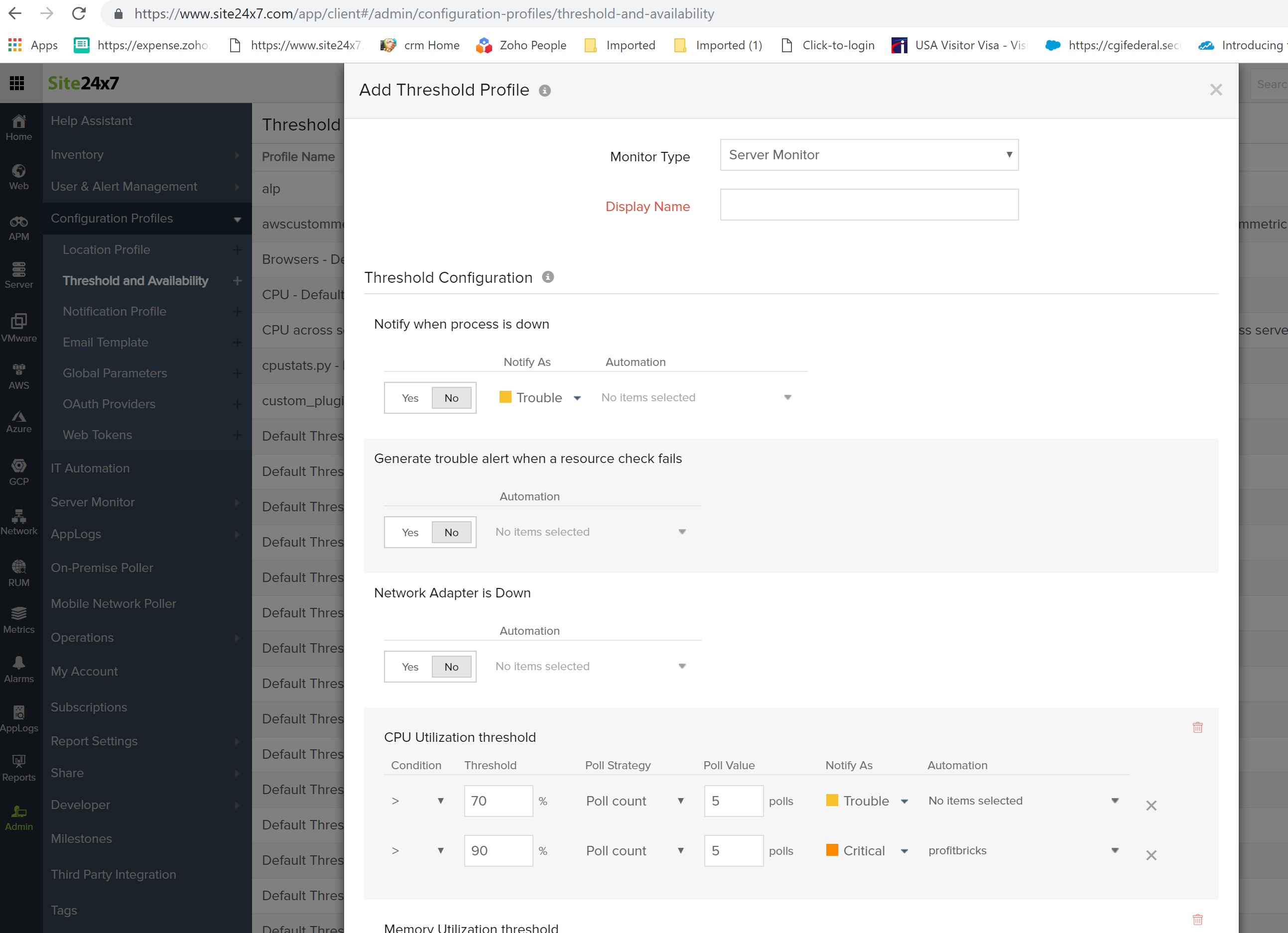 3. Once done, you can associate this automation in your threshold profile.
